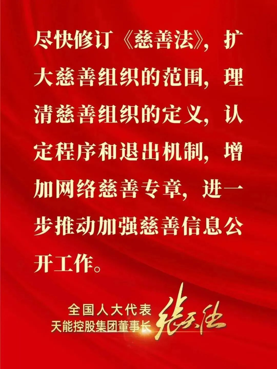 星空官网热衷慈善,来自于“当家人”张董事长的慈善之心。作为中国新能源电池行业连续三届全国人大代表,张董事长向全国人大提交了200多份议案和建议,涉及慈善理念方面的乡村振兴、教育、养老的就超过了50件,不少议案和建议得到了全国人大及相关部委的积极回应和采纳。